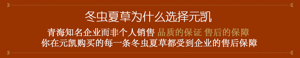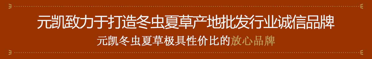 公司專業(yè)致力于青藏高原野生冬蟲夏草銷售、采收、精選包裝和現(xiàn)代化生產(chǎn)、研發(fā)等,并且在青海玉樹西藏那曲設立了采購站,專門采購地道的野生冬蟲夏草,充分保證了產(chǎn)品的品質(zhì)。元凱長期向國內(nèi)眾多著名藥材經(jīng)銷商、港澳臺以及東南亞中藥材采購商供應冬蟲夏草,多次被省、市、縣授予多種榮譽稱號“青海省知名商標”、“青海省誠信單位”、“青海省名優(yōu)企業(yè)”、“守合同重信用企業(yè)”等。
